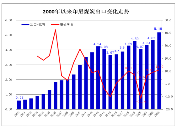 他表示,国内煤炭消费量呈现持续增加的趋势,即从2022年的1.77亿吨增加到2023年的2.13亿吨。煤炭出口量同样增加,预计从 2022 年的 4.65 亿吨增至 2023 年的 5.18 亿吨。