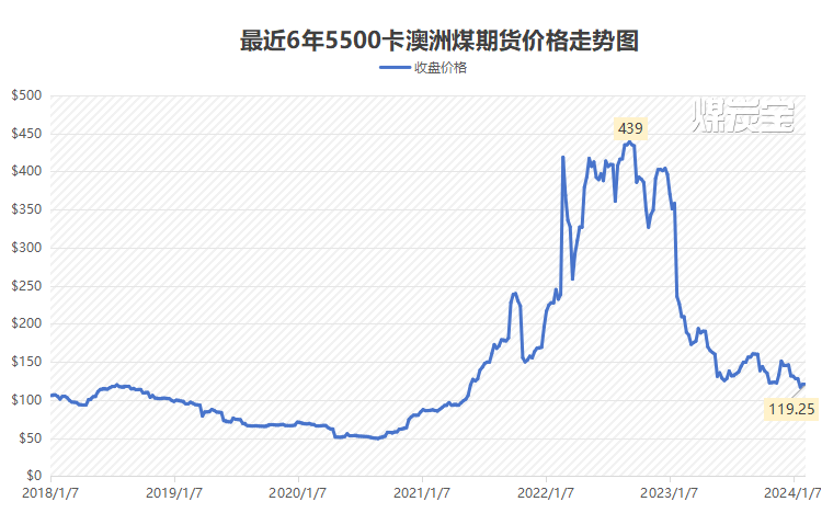 ▲2018-2023年澳大利亚煤炭期货价格走势图