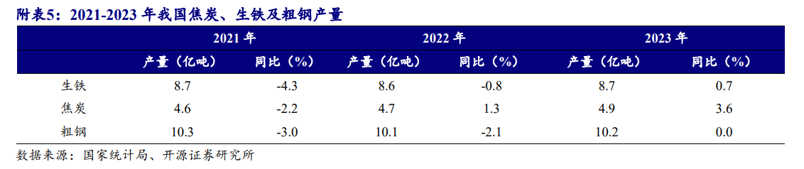 2024年火电发电量增速有望达5%-6%,地产、制造业、基建投资在政策推动下有望边际向好,生铁产量增速有望达3%-4%,预计煤炭需求增速为4%-5%,增加2-2.5亿吨。