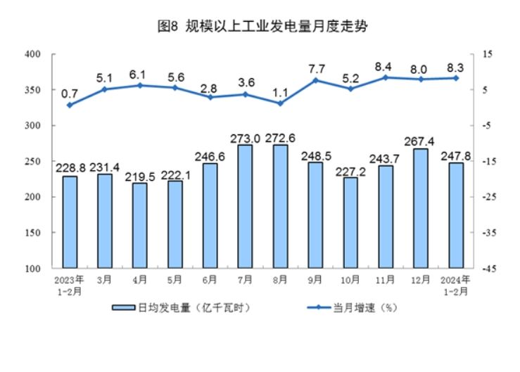 今年前2个月我国规上工业发电量同比增长8.3%