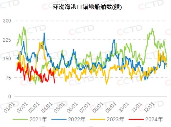 而与此同时,需求端却表现地更加惨淡,环渤海锚地船舶数量更是下降至54艘,接近年内最低水平。清明假期至今,江南、华南中北部一带多降雨,水电开始逐渐发力,对火电需求形成冲击;叠加北方大部分地区已经全面停暖,终端仅需维持刚需采购即可,沿海市场活跃度低,短期价格仍偏弱。