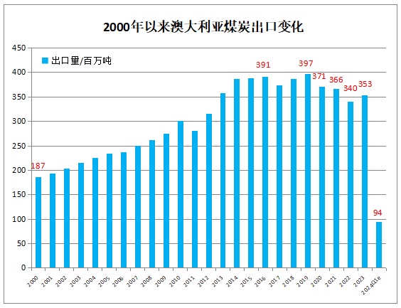 季报数据还显示,2024年一季度,澳大利亚煤炭出口量预计为9382万吨,比上年同期增加1385万吨,同比增长17.3%,但环比下降0.7%。其中,动力煤出口量预计为5068亿吨,同比增长11.7%,环比下降8.8%;冶金煤出口量预计为4315万吨,同比增长24.7%,环比增长10.8%。