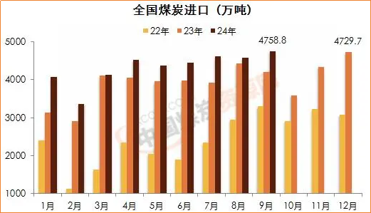 海关总署最新发布的数据显示,刚刚过去的9月份,全国煤炭进口量再攀高位,超过2023年12月份曾创下的4729.7万吨的历史高位,一举创下了单月进口量的新纪录。
