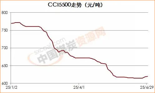 今年上半年,国内动力煤市场依旧未能摆脱持续疲软的态势,价格重心还在下移。中国煤炭资源网数据显示,截至6月底,CCI5500报收于620元/吨,较年初下跌150元/吨,跌幅19.48%。