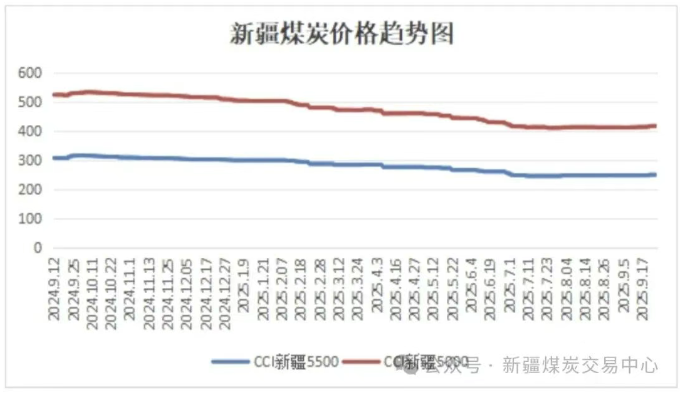 2025年7月至9月,新疆CCI5500和CCI5000价格整体呈现“先稳后升”的态势。7月,CCI5500从253元小幅回落至248元,CCI5000在165元附近窄幅波动;进入8月,两者价格趋于稳定。至9月,价格开始温和上涨,CCI5500从248元升至250元,CCI5000也从165元逐步回升至168元。 整体来看,三季度后期价格企稳并略有回暖。