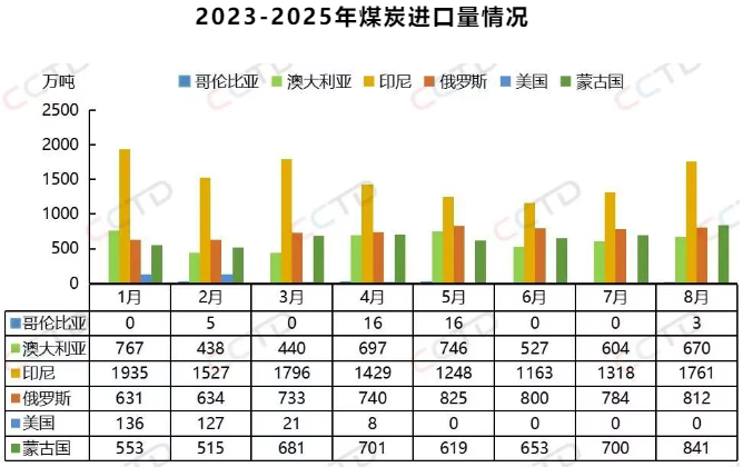 此外,价格优势明显也是进口煤维持环比增长的主要原因。8月以来,进口煤相较内贸煤持续保持一定的价格优势,尤其是印尼低卡煤,电厂对进口煤的招标采购较为活跃。