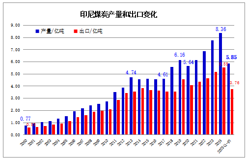 此前,印尼能源和矿产资源部发布的数据显示,2024年,印尼煤炭总产量为8.36亿吨,煤炭出口总量为5.55亿吨。