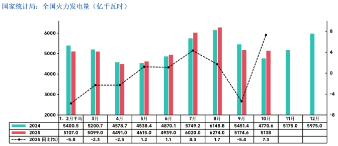 10月:原煤产量回落、火电同比走强