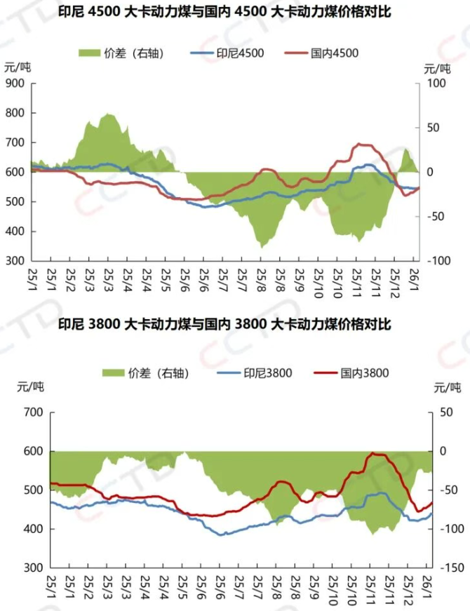 新年伊始,受印尼煤供应偏紧预期及终端补库需求增加推动,亚太地区动力煤市场活跃度有所上升。不过,中国国内沿海电厂虽维持刚需采购,但库存仍较为充足,对高价接受度有限,市场实际成交偏少。此外,由于进口印尼中卡煤与内贸煤相比暂无价格优势,而进口印尼低卡煤仍保持着一定的价格优势,终端采购以低卡煤为主。