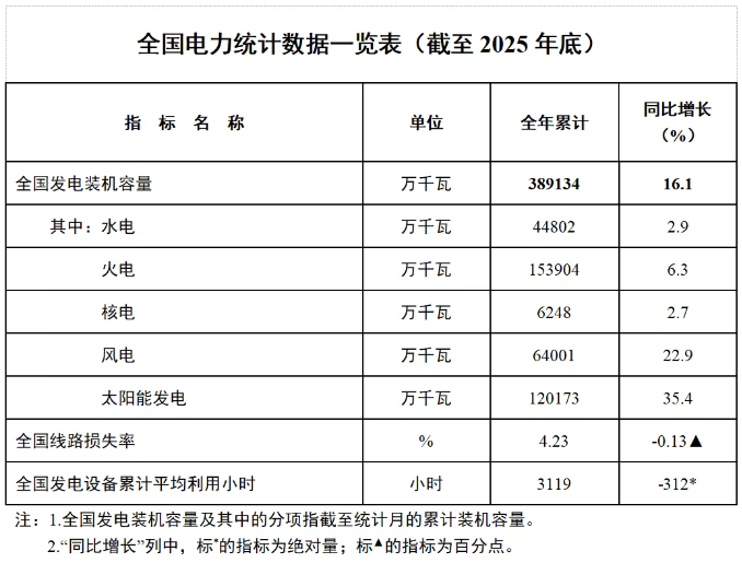国家能源局发布2025年全国电力统计数据