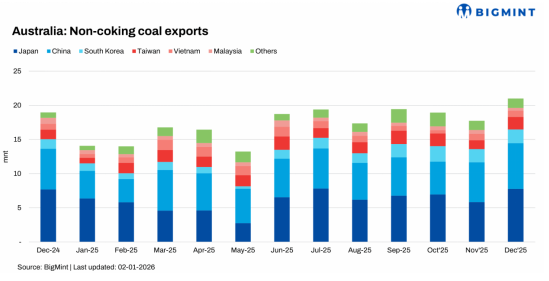 BigMint:2025年澳大利亚动力煤出口同比下降1.2%,炼焦煤出口同比下降5%