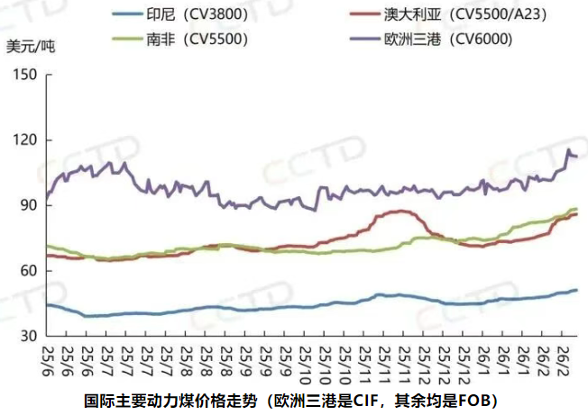 亚太地区来看,印尼年度生产配额仍存不确定性,多数矿企仍尚未拿到年度产量指标。2月12日,印尼能矿部煤炭司司长在2026年煤炭年度生产计划(RKAB)审批发布会上,提出提高国内市场供应义务(DMO)的比例,即由之前产量的25%上升到30%来供应国内。