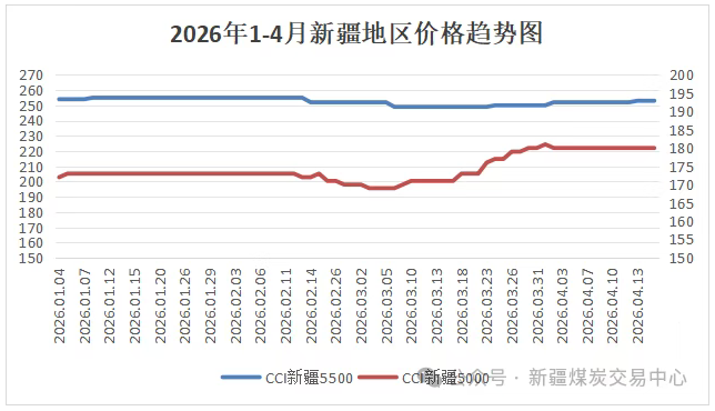 新疆产区:新疆煤炭价格走势出现明显分化,5500大卡价格整体稳中趋弱,而5000大卡价格则先跌后涨,呈现“V型”回升态势。