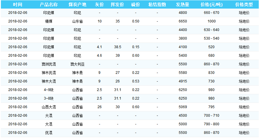 2018年2月6日广州港煤炭价格