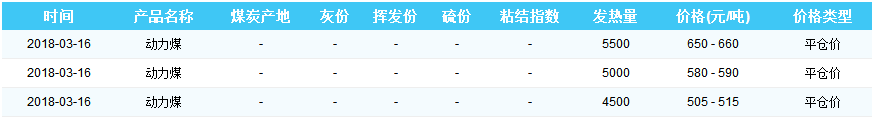2018年3月16日秦皇岛港煤炭价格