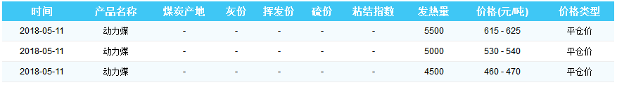 2018年5月11日曹妃甸港煤炭价格