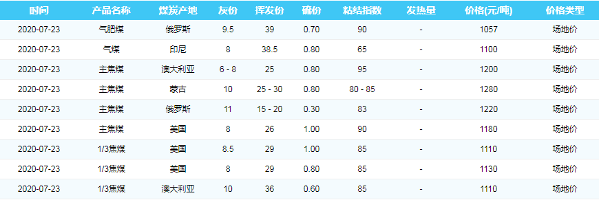 2020年7月23日天津港煤炭价格