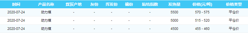 2020年7月24日黄骅港煤炭价格