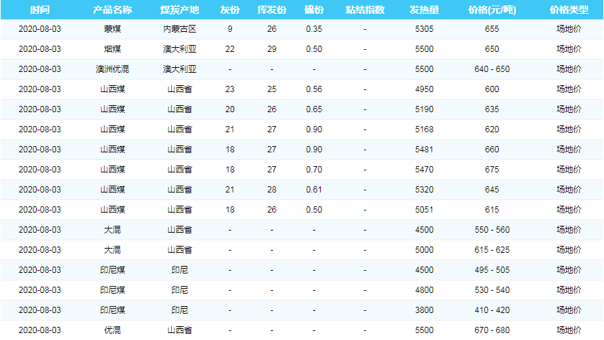 2020年8月3日广州港煤炭价格