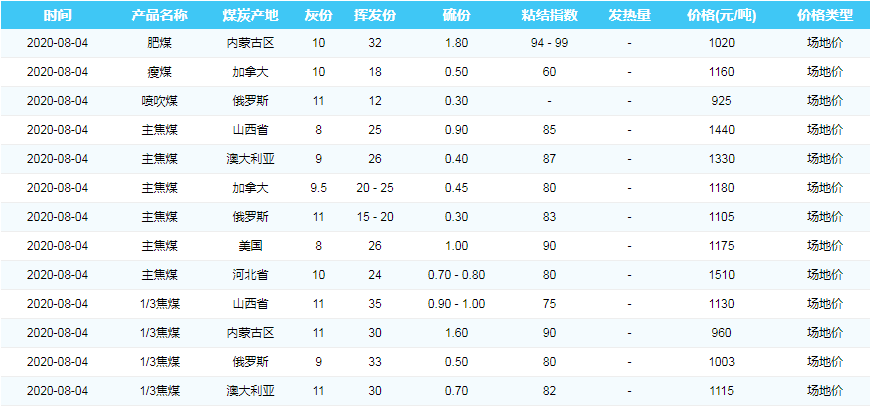 2020年8月4日广州港煤炭价格