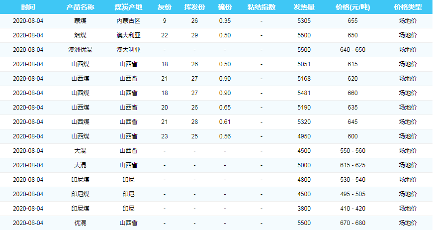 2020年8月4日广州港煤炭价格