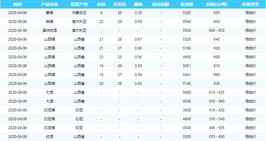 2020年8月6日广州港煤炭价格