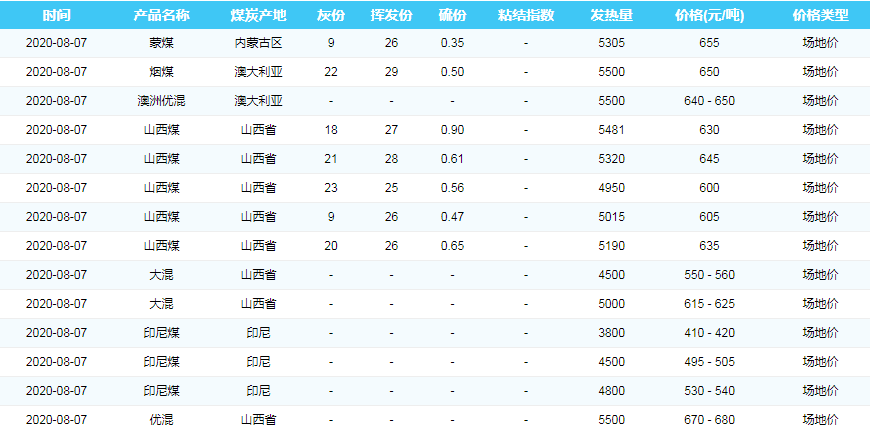 2020年8月7日广州港煤炭价格