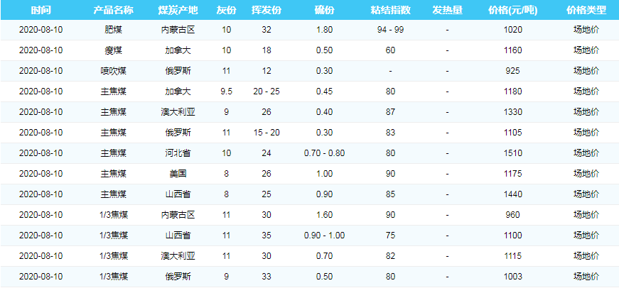2020年8月10日广州港煤炭价格