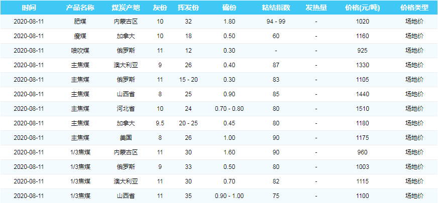 2020年8月11日广州港煤炭价格