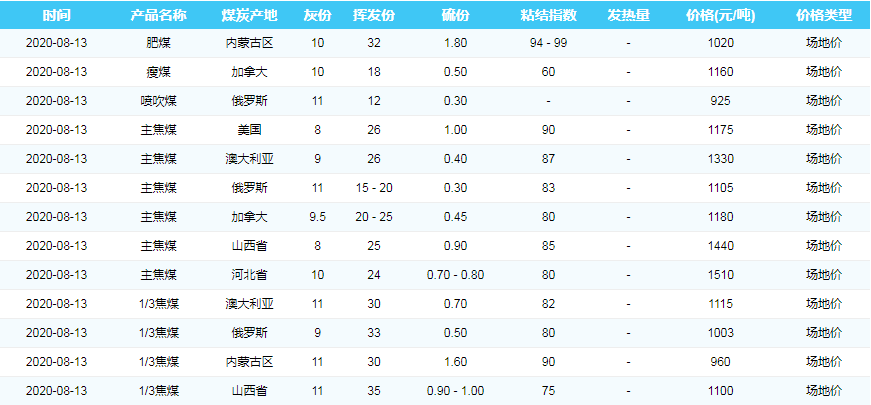 2020年8月13日广州港煤炭价格