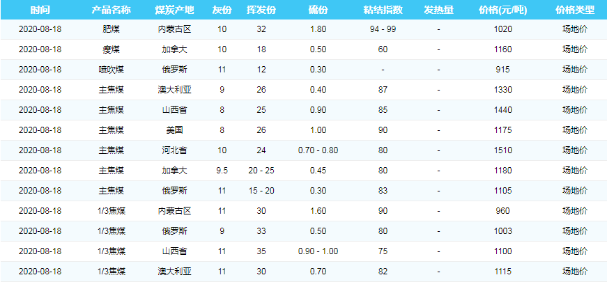 2020年8月18日广州港煤炭价格
