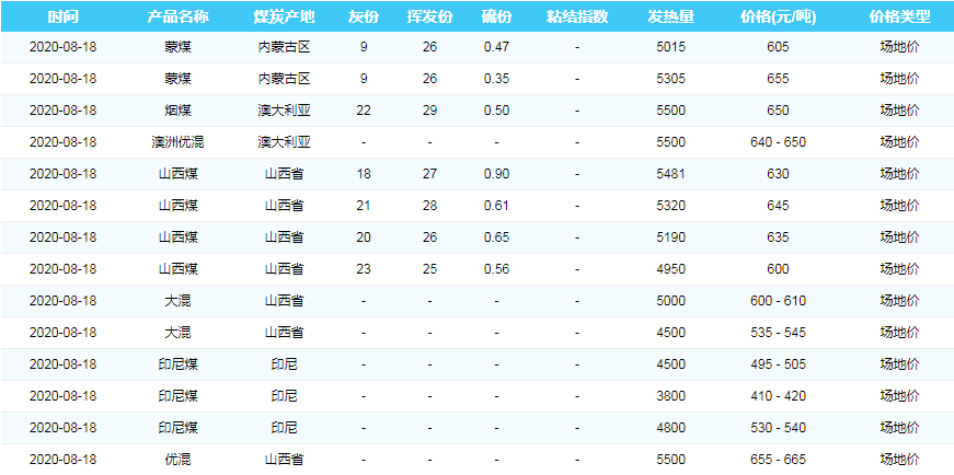 2020年8月18日广州港煤炭价格