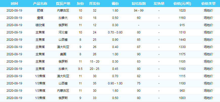 2020年8月19日广州港煤炭价格
