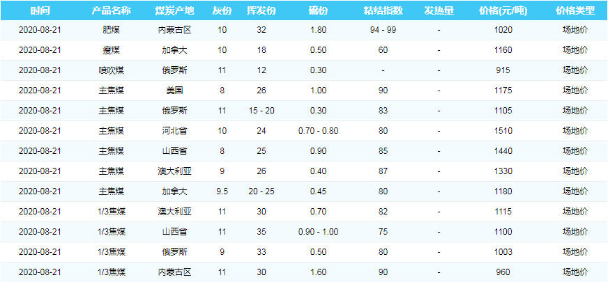 2020年8月21日广州港煤炭价格