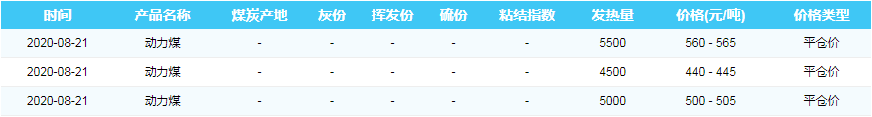 2020年8月21日黄骅港煤炭价格