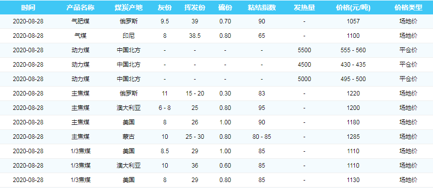 2020年8月28日天津港煤炭价格