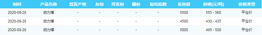 2020年8月28日曹妃甸港煤炭价格