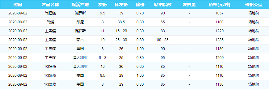 2020年9月1日广州港煤炭价格