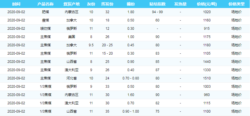 2020年9月2日广州港煤炭价格