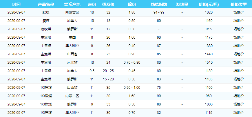 2020年9月7日广州港煤炭价格