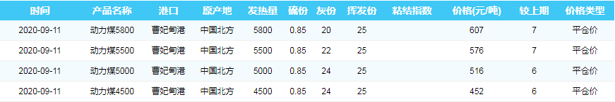 2020年9月11日曹妃甸港煤炭价格