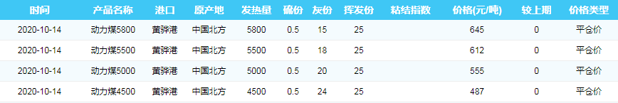 2020年10月14日黄骅港煤炭价格