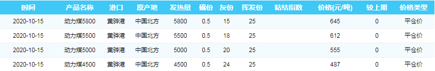 2020年10月15日黄骅港煤炭价格