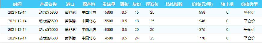 2021年12月14日黄骅港煤炭价格