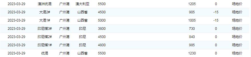 2023年3月29日广州港煤炭价格