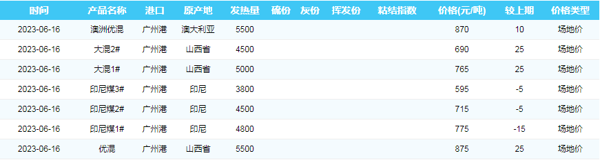 2023年6月16日广州港煤炭价格