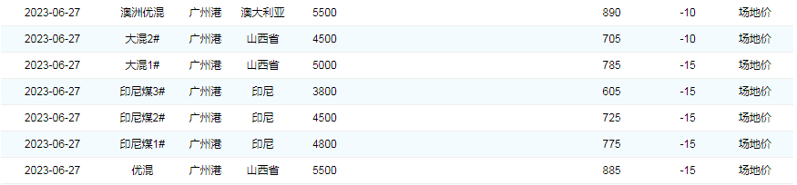 2023年6月27日广州港煤炭价格