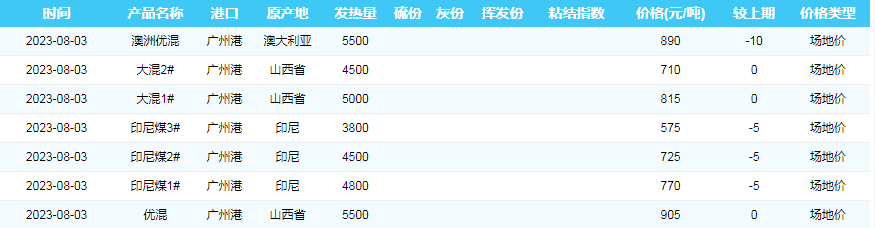2023年8月3日广州港煤炭价格