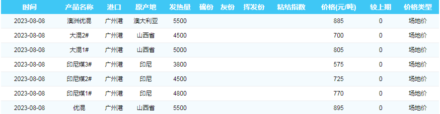 2023年8月8日广州港煤炭价格