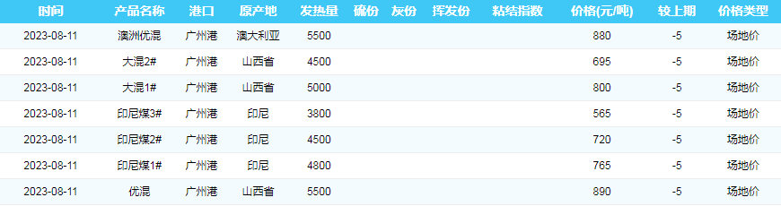 2023年8月11日广州港煤炭价格